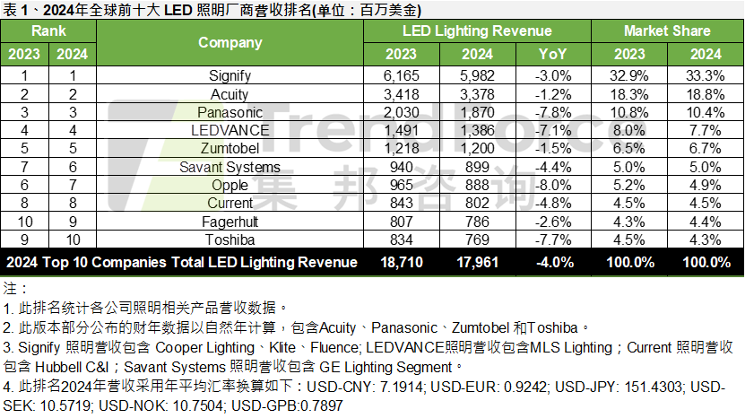 按照TrendForce不雅察,2025年上半年(1H25)全世界照明市场需求仍疲弱,但高光效、人因康健、智能与轮回照明产物占比上升,部门企业营收布局改善。别的,以美元计较下日当地区厂商营收降幅年夜幅收窄,TrendForce预估2025年全世界前20年夜照明厂商营收降至229.47亿$,年减3.9%。h3gesmc